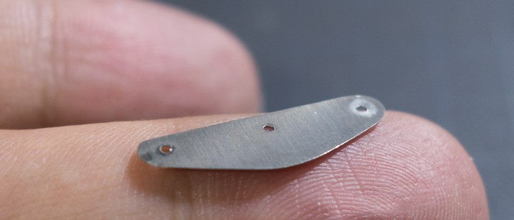 エンジン側の棒をくわえるところ。プラ板の積層から作ります。