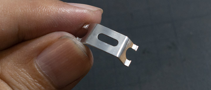 切って、穴あけて、曲げました。右に置いてあるのがキットのパーツ。