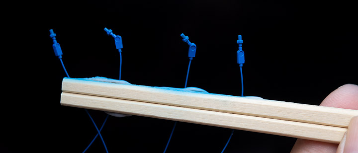 こちらにも、ブラケットの固定をテストしてみます。虫ピンを通して固定。