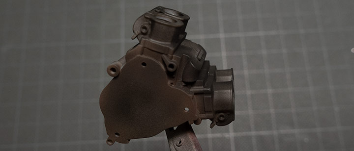 キャブレターはひとつ上の写真のように黒っぽく塗ったあと、混色して塗装しました。