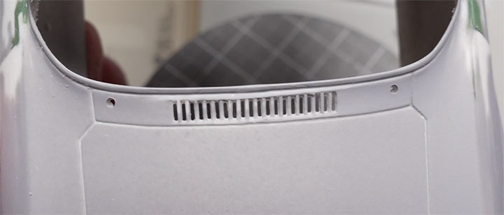 前部、ボンネット横の峰も似たようなデザインになっていますが、こちらはパテ盛りはせず、ヤスリのみでカタチをキレイにしています。
