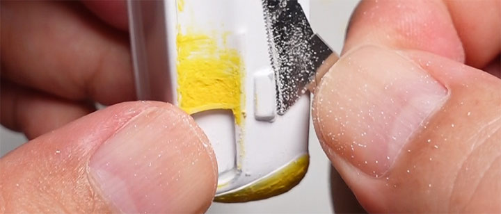 最初に細かい部分に爪楊枝などでUVレジンを塗るように押し込み、それから流します。