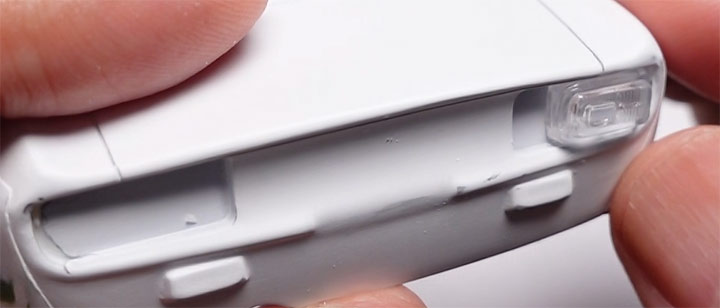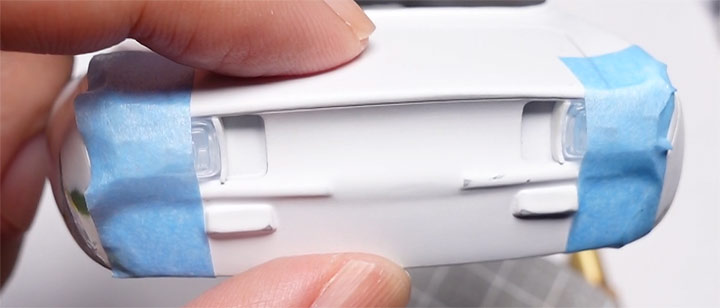 そしてテールランプ下部の膨らんでいる部分を切り取って場所を変えます。カタチも変えます。